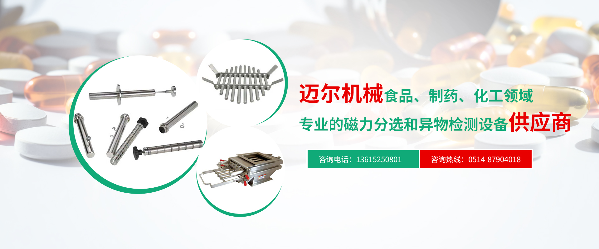 揚州邁爾機械科技有限公司 是食品、制藥、化工領(lǐng)域?qū)I(yè)的磁力分選和異物檢測設(shè)備供應(yīng)商,我們依托歐洲同領(lǐng)域的技術(shù),致力于為食品、制藥、化工行業(yè)提供高效的分選和檢測設(shè)備,幫助企業(yè)在生產(chǎn)加工過程中解決所遇到的異物難題。